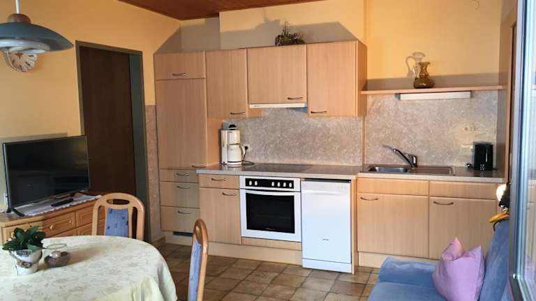 Die Apartments im Appartementhaus zur Loipe sind ideal für Selbstversorger und bieten eine voll ausgestattete Küche mit einem Geschirrspüler. Das Wohnzimmer verfügt über einen gemütlichen Sitzbereich und einen Flachbild-Sat-TV. Jedes Apartment verfügt zudem über einen Balkon, von dem aus Sie einen herrlichen Blick auf die umliegenden Berge genießen können. Die Endreinigung ist im Preis inbegriffen, sodass Sie sich um nichts kümmern müssen.