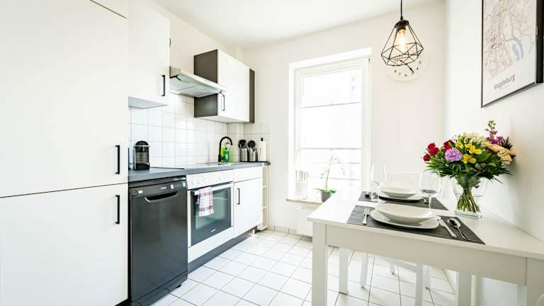 APARTMENTO Magdeburg ist eine Ferienwohnung mit zwei Zimmern, Terrasse und Balkon. Sie bietet eine Gemeinschaftslounge und Kostenloses WLAN sowie einen kostenlosen Privatparkplatz.