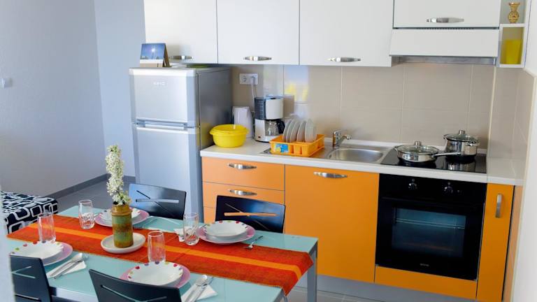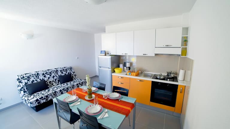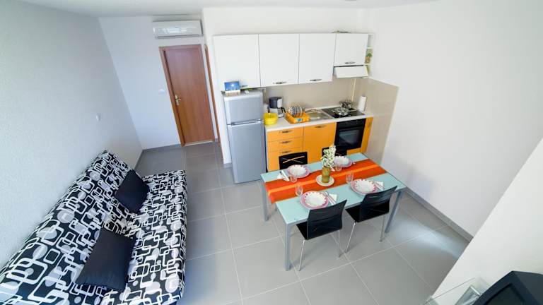 Die klimatisierten Apartments im Apartments 1234 bieten Ihnen einen komfortablen Aufenthalt. Jedes Apartment verfügt über ein separates Schlafzimmer und einen Wohnbereich mit einem Schlafsofa. Die voll ausgestattete Küche ermöglicht es Ihnen, Ihre eigenen Mahlzeiten zuzubereiten. Auf dem Balkon können Sie den Blick auf das Meer und die Insel Brač genießen. Sat-TV und kostenfreies WLAN stehen Ihnen ebenfalls zur Verfügung. Parkplätze sind kostenlos vorhanden.