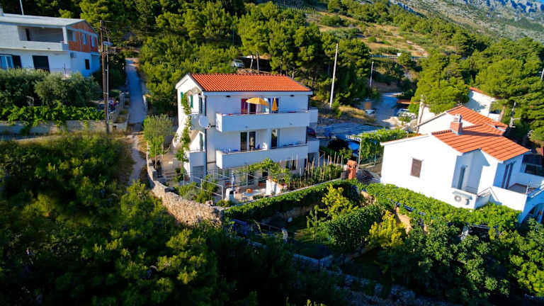 Das Apartments 1234 in Marušići befindet sich in einer erhöhten Lage und bietet einen beeindruckenden Blick auf das Meer und die Insel Brač. Der Strand ist nur 600 m entfernt und leicht zu erreichen. In der Nähe des Apartments finden Sie auch ein Restaurant und einen Supermarkt. Die Stadt Omiš und der Fluss Cetina liegen 15 km entfernt und sind einen Besuch wert. Die Autobahn A1 ist in nur 30 Fahrminuten erreichbar und bietet eine gute Anbindung an die Ausfahrten nach Makarska und Šestanovac.