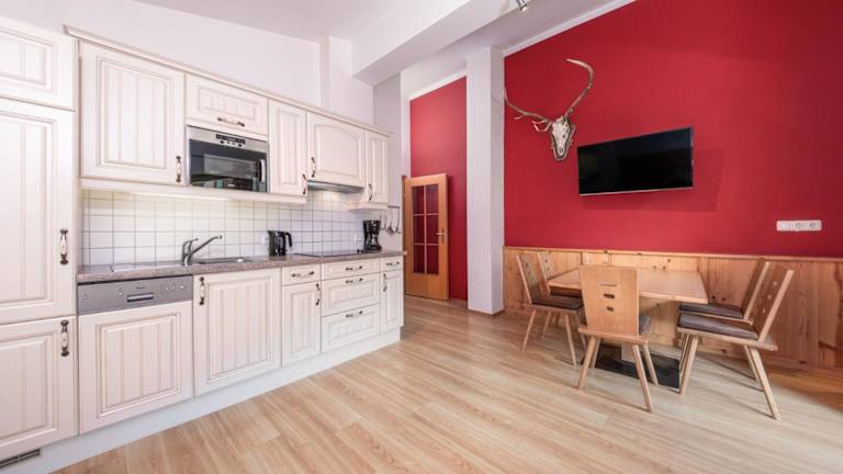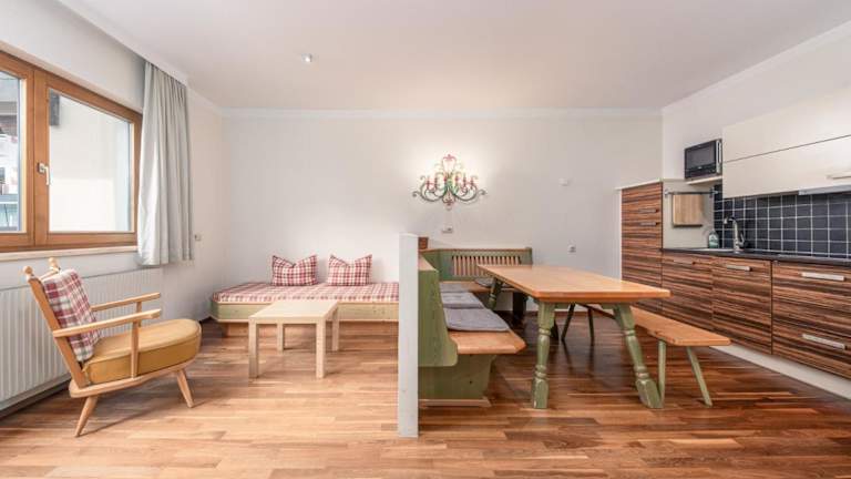 Die Gäste des Apartments Alpina können die Halbpension im 300 m entfernten Huber's Boutique Hotel genießen. Hier werden köstliche Mahlzeiten serviert. Das Hotel verfügt auch über ein Wellnesscenter, das gegen eine zusätzliche Gebühr genutzt werden kann.