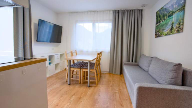 Die Wohneinheiten der Apartments ALPsmart sind mit einer Terrasse ausgestattet, die einen Blick auf die Berge bietet. Jede Einheit verfügt über einen Kabel Flachbild-TV sowie eine gut ausgestattete Küche, die neben einem Kühlschrank, Geschirrspüler und Mikrowelle auch eine Kaffeemaschine und einen Wasserkocher enthält. Ein eigenes Badezimmer mit Dusche und Haartrockner ist ebenfalls vorhanden.