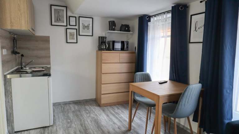 Die Apartments verfügen über eine voll ausgestattete Küchenzeile, die mit einem Kühlschrank, einer Mikrowelle, einer Herdplatte, einem Toaster, einer Kaffeemaschine und einem Wasserkocher ausgestattet ist. Zudem bietet jede Einheit einen Essbereich.