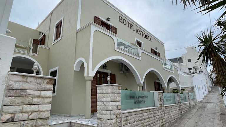 Das Antonia Apartments ist eine ideale Unterkunft für Ihren Aufenthalt in Fira, Santorin. Nur wenige Schritte vom Hauptplatz entfernt, bietet es klimatisierte Zimmer und Apartments mit Balkon sowie einen Pool und kostenloses WLAN. Die geschmackvoll eingerichteten Unterkünfte bieten allen Komfort, den Sie benötigen, darunter LCD-TV, Safe und Haartrockner. Einige Apartments verfügen auch über eine gut ausgestattete Küchenzeile. Die Lage des Antonia ist ideal, da es sich nur wenige Gehminuten von einer Bushaltestelle befindet, von der aus Sie bequem zu den wichtigsten Sehenswürdigkeiten von Santorin gelangen. Der Flughafen der Insel ist nur 10 Autominuten entfernt und kostenfreie Parkplätze stehen in der Nähe zur Verfügung.