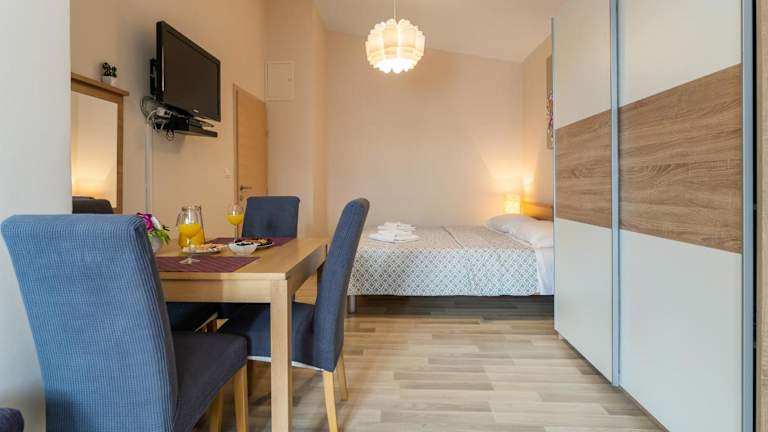Die Argyruntum Apartments in Starigrad-Paklenica bieten eine ideale Lage nur 1 km vom Stadtzentrum entfernt und nur 400 m vom Meer entfernt. Die Unterkunft verfügt über geräumige Apartments und Studios mit kostenfreiem WLAN und Parkplätzen. Genießen Sie den schönen Garten mit Grillmöglichkeiten und entspannen Sie in den klimatisierten Unterkünften mit Flachbild-TV und voll ausgestatteter Küchenzeile. Die Nähe zu einem Kieselstrand, Restaurants, Bars und einem Markt ermöglicht Ihnen einen komfortablen und abwechslungsreichen Aufenthalt. Die Eigentümer bieten zudem Ausflüge zu den umliegenden Sehenswürdigkeiten und Nationalparks sowie Raftingtouren auf dem Fluss Zrmanja an.