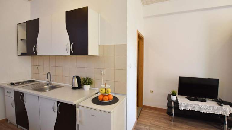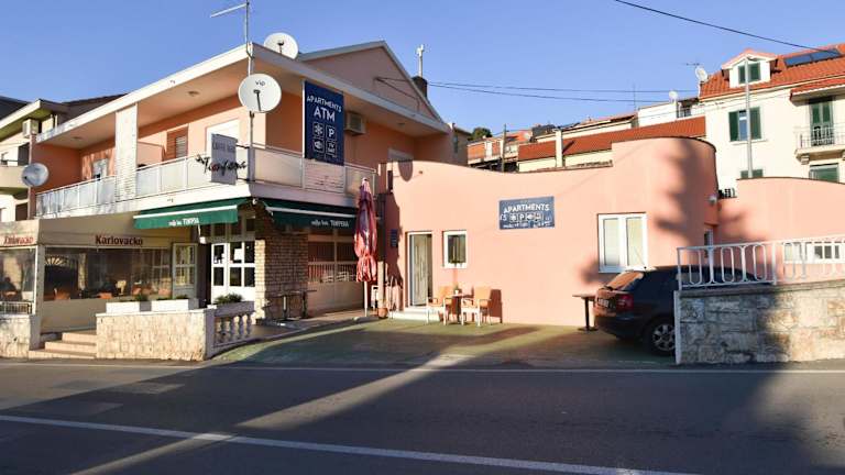 Die Apartments ATM liegen in günstiger Lage, nur 500 m vom Zentrum von Šibenik entfernt. In der Nähe befinden sich verschiedene Restaurants und ein Lebensmittelgeschäft. Der nächste Strand ist nur 1 km entfernt und die Altstadt von Šibenik erreichen Sie nach einem kurzen Spaziergang. Der Nationalpark Krka ist ebenfalls leicht zu erreichen und bietet atemberaubende Natur und Wasserfälle. Der Hauptbusbahnhof ist ca. 250 m entfernt und zum Fährhafen gelangen Sie nach 350 m. Der Flughafen Split ist etwa 50 km entfernt.
