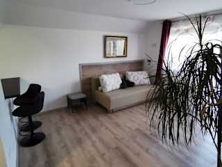 Die Unterkunft umfasst ein Schlafzimmer, ein Wohnzimmer mit einem Schlafsofa, eine ausgestattete Küche sowie ein Bad mit Dusche. Ein Balkon ist ebenfalls vorhanden. Zur Ausstattung gehören ein Flachbild-Sat-TV, kostenloses WLAN, Gartenmöbel und Annehmlichkeiten wie Bettwäsche, Handtücher sowie Reinigungsservice nach Vorgaben der Behörden.