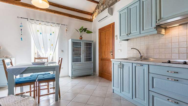 Die Studios im Casa Saina sind geräumig und bieten einen Balkon, auf dem die Gäste die Sonne und die frische Luft genießen können. Die Zimmer sind mit Klimaanlage, kostenfreiem WLAN und Sat-TV ausgestattet, um den Komfort der Gäste zu gewährleisten. Das renovierte Familienhaus bewahrt seine ursprünglichen Merkmale wie Holzbalkendecken, schmiedeeiserne Geländer und freiliegende Steinwände, die dem Raum Charakter verleihen. Die klassischen Möbel in Pastellfarben sorgen für eine angenehme Atmosphäre.