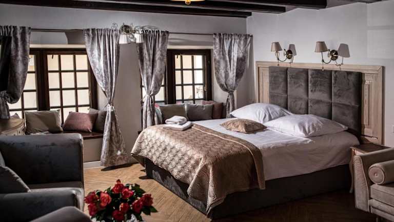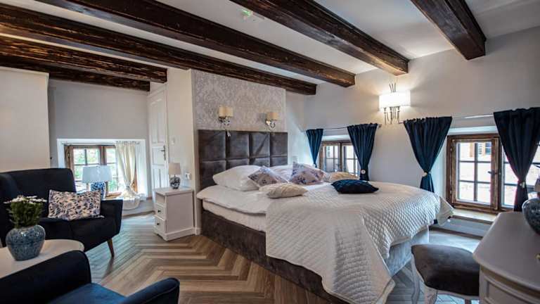 Das Hotel Dawna Synagoga Beitenu in Kazimierz Dolny ist eine elegante Unterkunft in idealer Lage nur 50 m vom Marktplatz entfernt. Die klassisch eingerichteten Zimmer bieten kostenfreies WLAN und ein stilvolles Interieur in warmen Farben. Gäste können die Gemeinschaftsküche nutzen und die Umgebung bei Aktivitäten wie Wandern erkunden. Die Nähe zur Pfarrkirche, der Burgruine Kazimierz und dem Ufer der Weichsel macht das Hotel zu einem perfekten Ausgangspunkt, um die Umgebung zu erkunden.