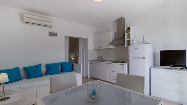 Verbringen Sie Ihren Urlaub im Apartment Del Sole in Nerezine und genießen Sie die Nähe zum Kiesstrand sowie die herrliche Aussicht auf das Meer. Die klimatisierten Apartments bieten Ihnen alle Annehmlichkeiten für einen komfortablen Aufenthalt, darunter eine überdachte Terrasse, kostenfreies WLAN und eine gut ausgestattete Küchenzeile. Entspannen Sie im Garten mit Oliven- und Feigenbäumen und nutzen Sie die kostenfreien Privatparkplätze.