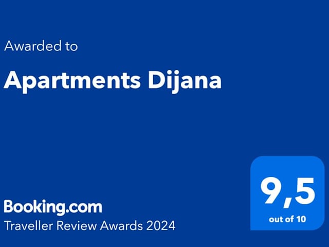 Die Apartments Dijana bieten klimatisierte Unterkünfte zur Selbstverpflegung. Jedes Apartment verfügt über einen Balkon, auf dem Sie die frische Luft und den Blick auf die Umgebung genießen können. Zur Ausstattung gehören auch Sat-TV und ein eigenes Bad mit einer Badewanne oder einer Dusche. In der gut ausgestatteten Küchenzeile können Sie Ihre eigenen Mahlzeiten zubereiten. Grillmöglichkeiten stehen Ihnen ebenfalls zur Verfügung, um ein BBQ-Erlebnis im Freien zu genießen. Ein Bügelservice ist ebenfalls vorhanden, um Ihren Aufenthalt so angenehm wie möglich zu gestalten.