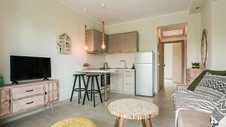 Die Unterkunft befindet sich in Pefkochori, in der Nähe des Strands Pefkohori, der etwa 500 Meter entfernt ist. Der Strand Paralia Glarokabos ist 1,9 Kilometer von der Unterkunft entfernt. Der nächstgelegene Flughafen ist der Flughafen Thessaloniki, der sich 92 Kilometer von der Unterkunft befindet.