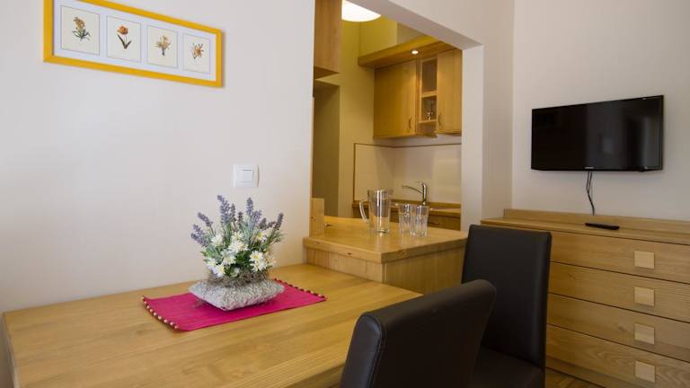 Die Apartments Erica Lux 2 bieten elegant eingerichtete Zimmer mit Klimaanlage und kostenfreiem WLAN. Jedes Apartment verfügt über eine voll ausgestattete Küche mit einem Geschirrspüler, ein Wohnzimmer mit einem Flachbild-Sat-TV und ein Badezimmer mit einer Waschmaschine. Die Zimmer sind modern und komfortabel eingerichtet und bieten alles, was Sie für einen angenehmen Aufenthalt benötigen.