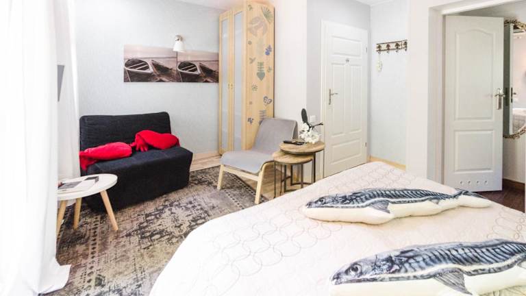 Das Fisher House bietet seinen Gästen eine Terrasse, auf der Sie sich entspannen und die frische Luft genießen können. Ein Safe steht ebenfalls zur Verfügung, um Ihre Wertsachen sicher aufzubewahren. Erkunden Sie die Umgebung und besuchen Sie Sehenswürdigkeiten wie das Krzywy Domek, ein ungewöhnlich geformtes Gebäude, das definitiv einen Besuch wert ist.