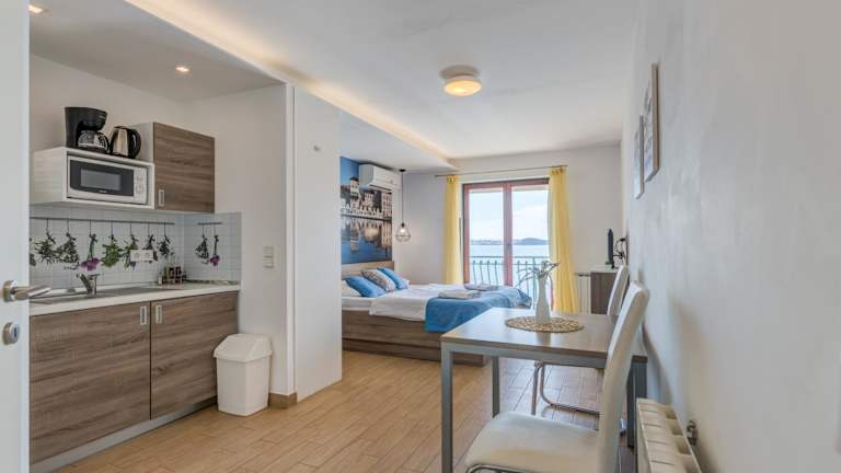 Die Apartments G in Seget Donji bieten einen traumhaften Aufenthalt direkt am Strand. Die klimatisierten Apartments sind modern eingerichtet und verfügen über kostenfreies WLAN sowie einen Balkon mit Meerblick. Die gut ausgestatteten Küchen ermöglichen Ihnen eine Selbstversorgung und das Frühstück im Freien mit Meerblick ist ein wahrer Genuss. Die Altstadt von Trogir ist nur 3 km entfernt und kann bequem mit dem Taxiboot erreicht werden. Auch Flughafentransfers sind verfügbar, sodass einer entspannten Anreise nichts im Wege steht.