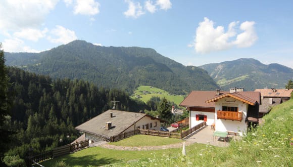 Unser Haus liegt am Sonnenhang von St. Ulrich in ruhiger Lage. Es hat Panoramablick auf Langkofel, Seceda und Seiser Alm.