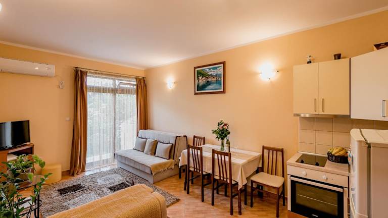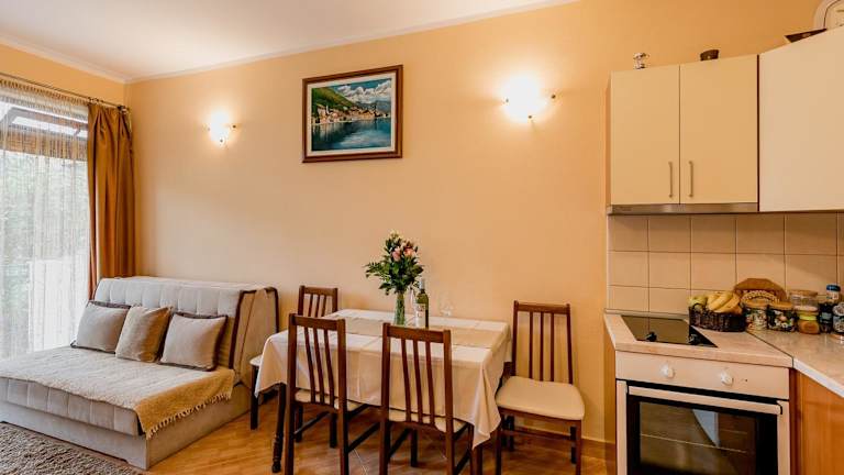 Das Apartments Gudelj liegt nur 2 Gehminuten vom Strand in Kamenari entfernt. Die zentrale Lage ermöglicht es Ihnen, die umliegenden Städte und Sehenswürdigkeiten bequem zu erreichen. Der öffentliche Nahverkehr ist nur 100 m entfernt, so dass Sie problemlos nach Herceg Novi und Igalo gelangen können. In der Nähe des Apartments finden Sie auch ein Restaurant und einen Supermarkt für Ihre Einkäufe. Der Fährterminal, der Ihnen Zugang zu Städten wie Kotor und Tivat über die Bucht von Kotor bietet, ist nur 600 m entfernt.