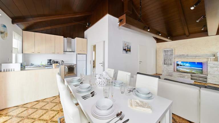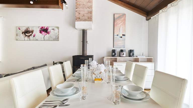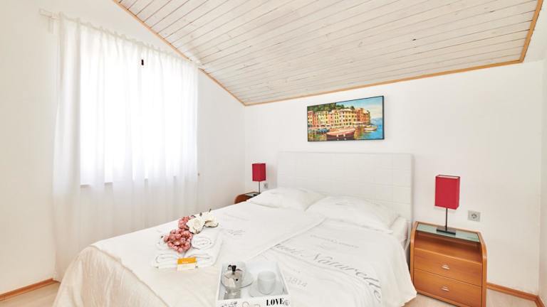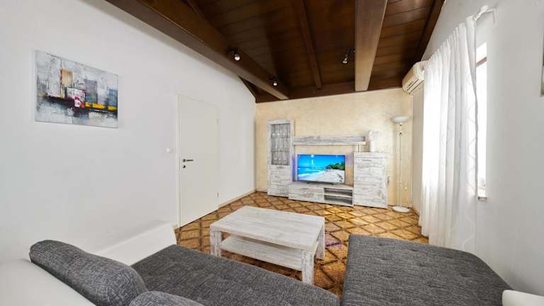 Die Apartments Gvarda liegen in Zambratija, nur 300 m vom Kies- und Steinstrand entfernt. Das Zentrum von Umag mit seinen zahlreichen Restaurants, Geschäften und Unterhaltungsmöglichkeiten erreichen Sie nach einer kurzen Autofahrt von 4 km. In unmittelbarer Nähe finden Sie ein Lebensmittelgeschäft und ein Restaurant, so dass Sie bequem einkaufen und essen gehen können. Es gibt auch viele Freizeitaktivitäten in der Umgebung, wie Reiten und Radfahren auf den verschiedenen Radwegen. Der örtliche Bus hält nur 200 m von der Unterkunft entfernt und der Busbahnhof von Umag ist ebenfalls nur 4 km entfernt. Die Flughäfen Portorož und Pula sind jeweils 20 km bzw. 72 km entfernt.