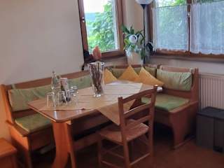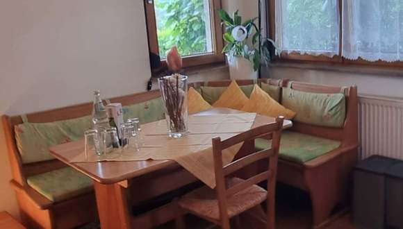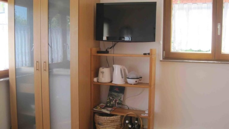 Die Ferienwohnung verfügt über ein Wohnzimmer und eine vollständig eingerichtete Küche, die für die Selbstversorgung ausgelegt ist.