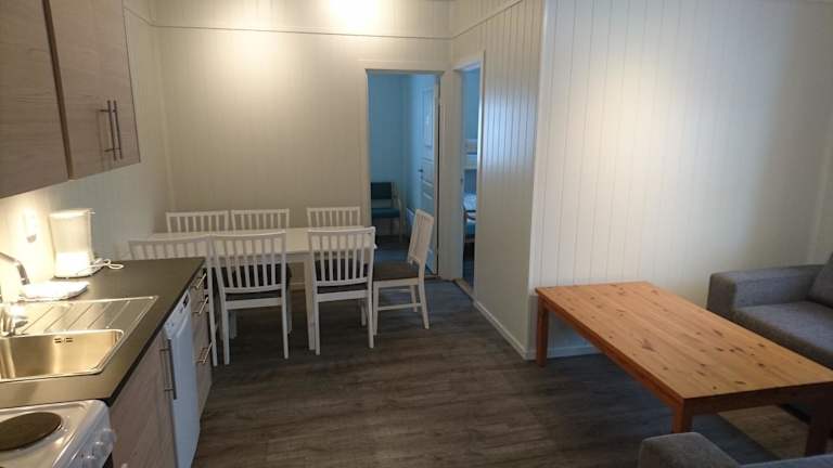 Wir übernachteten auf unserer Rückreise vom Polarkreis notgedrungen eine Nacht in diesem Hotel, weil die Hütten vor dem Dovrefjell belegt waren. Für das einfache, wenig einladende Zimmer mit zwei schmalen Doppelstockbetten mit durchgelegenen und pieksenden Matratzen (Sprungfedern!) und undurchsichtigem, schmutzigem Fenster waren 800 NOK fällig. Die Nutzung der Gemeinschaftsduschen auf dem Gang war inklusive, Bettwäsche mußte man selbst mithaben. Das Frühstück kostet pro Person weitere 75 NOK, worauf wir verzichtet…