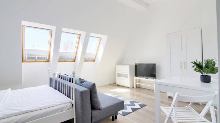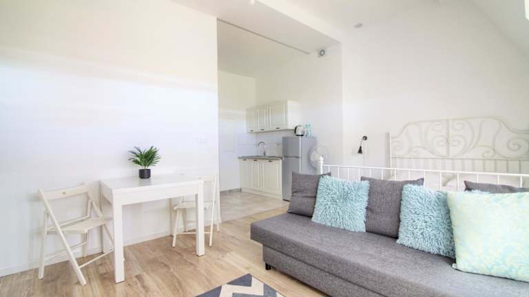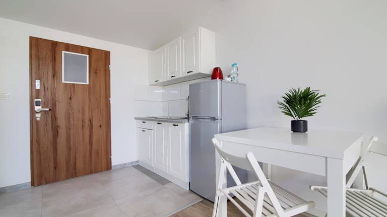 In den Apartments steht den Gästen eine voll ausgestattete Küchenzeile zur Verfügung, die einen Kühlschrank, ein Kochfeld und einen Wasserkocher beinhaltet. Jedes Apartment ist mit einem gemütlichen Sitzbereich ausgestattet, der es den Gästen ermöglicht, sich zu entspannen. Die Bäder sind mit Badewanne oder Dusche und Haartrockner ausgestattet.