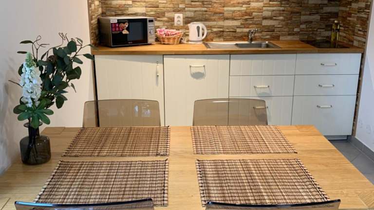 Die Unterkünfte sind mit Parkett ausgestattet und umfassen eine voll ausgestattete Küchenzeile mit Geschirrspüler, Mikrowelle, Kühlschrank, Kochfeld und Wasserkocher. Zudem stehen ein Essbereich, ein Flachbild-TV und ein eigenes Bad mit Dusche und Haartrockner zur Verfügung.