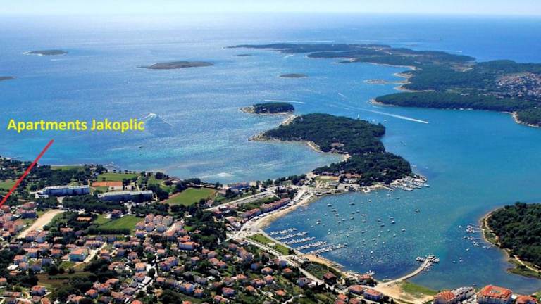 Die Apartments Jakoplić befinden sich in Medulin, nur 700 m vom Strand Bijeca entfernt. Die Pension liegt ungefähr 1 km von Strand Alba Chiara und 800 m vom Strand Belvedere. Zu den Sehenswürdigkeiten in der Nähe zählen das Amphitheater Pula in 11 km Entfernung sowie die Kirche der heiligen Euphemia in Rovinj, die 48 km entfernt ist. Die Vižula Archaeological Site ist 2,2 km entfernt. Der nächste Flughafen ist der Flughafen Pula, der 16 km entfernt liegt.
