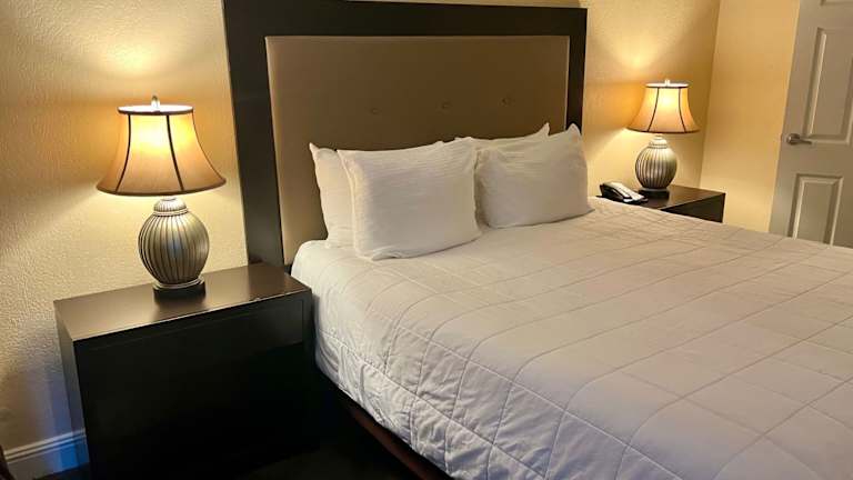 Die Suiten im Jockey Resort Suites Center Strip bieten geräumige Unterkünfte mit voll ausgestatteten Küchen, die Ihnen die Flexibilität geben, Ihre eigenen Mahlzeiten zuzubereiten. Die Zimmer verfügen auch über moderne Annehmlichkeiten wie einen DVD-Player, eine Stereoanlage und kostenfreien Highspeed-Internetzugang. Sie können sich also auch in Ihrem Zimmer entspannen und Ihre Lieblingsfilme oder Musik genießen.