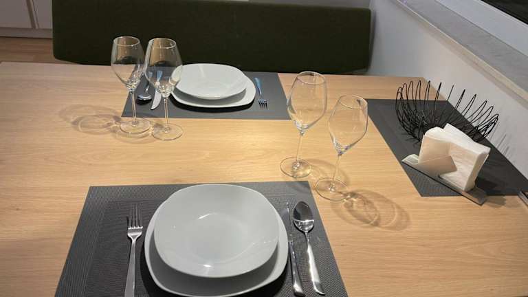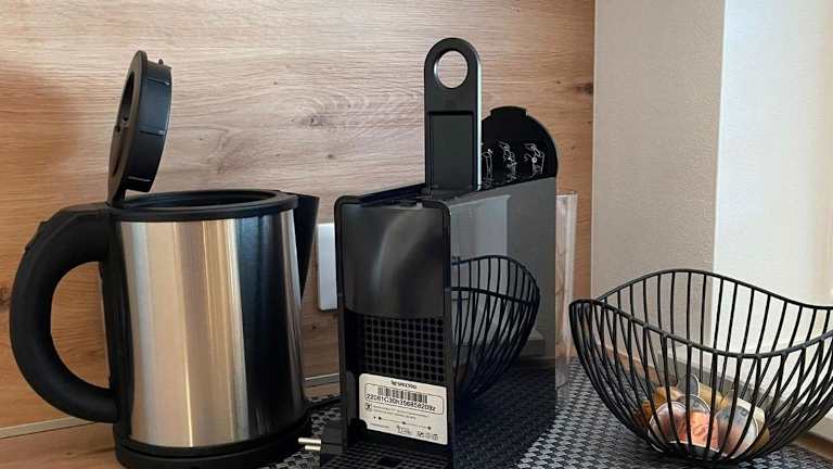 Die Zimmer sind mit einer voll ausgestatteten Küche ausgestattet, die über einen Kühlschrank, Geschirrspüler, Herdplatte, Kaffeemaschine und Wasserkocher verfügt. Des Weiteren stehen ein eigenes Badezimmer mit Bidet und Haartrockner, sowie ein Sitzbereich zur Verfügung.
