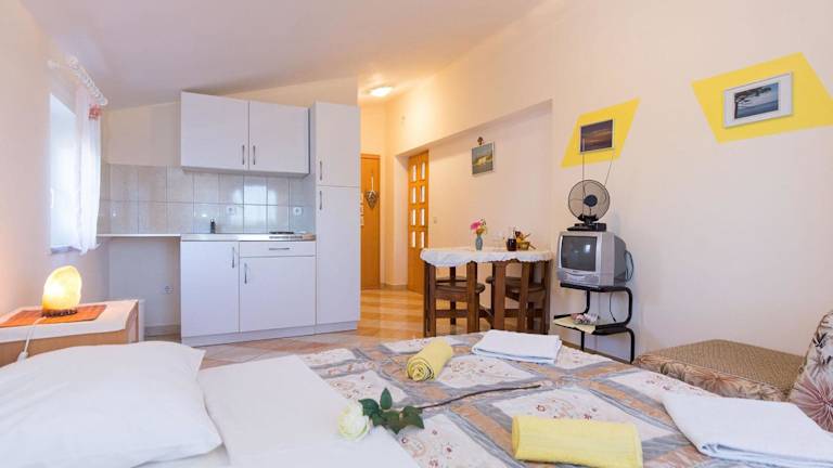 In den Apartments Juras können Sie sich im Garten entspannen und die ruhige Atmosphäre genießen. Erkunden Sie die Umgebung und entdecken Sie die Schönheit der Insel Krk. Unternehmen Sie Wanderungen entlang der Küste oder erkunden Sie die charmanten Dörfer in der Nähe. Wassersportmöglichkeiten und Bootstouren sind ebenfalls in der Umgebung verfügbar. Verpassen Sie nicht die Gelegenheit, die unberührte Natur und die atemberaubende Landschaft der Insel Krk zu erkunden.
