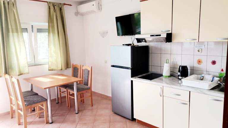 In den Apartments Jurica können Sie Ihre eigenen Mahlzeiten zubereiten, da jede Unterkunft über eine Küchenzeile verfügt. Alternativ finden Sie in der Umgebung zahlreiche Restaurants und Cafés, in denen Sie lokale Spezialitäten und internationale Gerichte probieren können. Genießen Sie den Geschmack der dalmatinischen Küche während Ihres Aufenthalts.