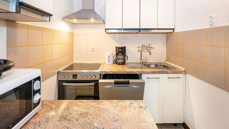 Das Hotel bietet Grillmöglichkeiten im Garten, so dass Sie Ihre eigenen Mahlzeiten zubereiten und im Freien genießen können. Alternativ können Sie auch das Stadtzentrum von Krk erkunden, das sich nur 500 m entfernt befindet und eine Vielzahl von Restaurants und Cafés bietet.