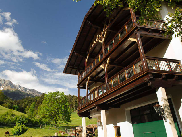 Unsere Gäste entspannen im Obstgarten und bestaunen die prachtvollen Pferde auf der Koppel! Gleich hinter dem Haus warten ausgedehnte Wanderwege und anspruchsvolle Berggipfel auf Sie. Sie überqueren lediglich unsere Obstbaumwiese und finden sich im dichten Wanderwegenetz der Innsbrucker Nordkette wieder.