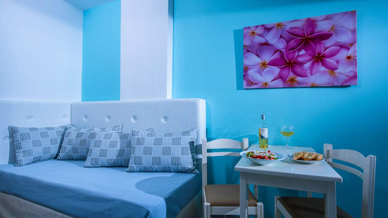 Die Unterkünfte in den Kastro Beach Apartments sind modern eingerichtet und verfügen über einen eigenen Balkon. Die Zimmer sind schlicht, aber stilvoll dekoriert und bieten alle Annehmlichkeiten, die Sie für einen angenehmen Aufenthalt benötigen. Jedes Zimmer und Apartment verfügt über einen Mini-Kühlschrank und eine kleine Küchenzeile, so dass Sie sich selbst versorgen können. Ein Esstisch mit 3 Sitzplätzen steht in allen Zimmern zur Verfügung.