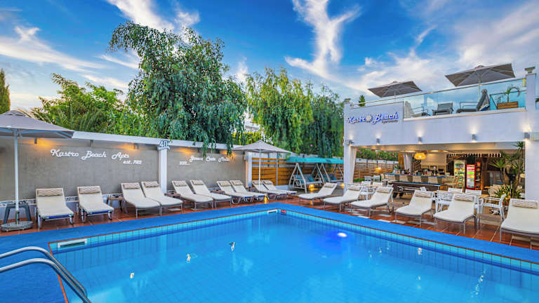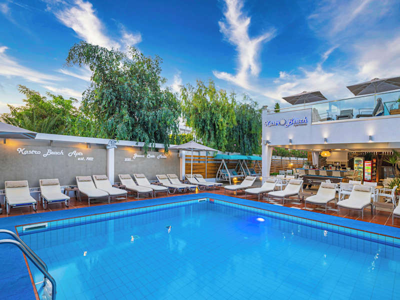Die Kastro Beach Apartments in Malia bieten moderne Unterkünfte mit eigenem Balkon und allen Annehmlichkeiten, die Sie für einen angenehmen Aufenthalt benötigen. Genießen Sie den Außenpool und das Restaurant mit europäischer Küche. Die Strandlage und die Nähe zu Sehenswürdigkeiten und Geschäften machen dieses Hotel zu einer idealen Wahl für Ihren Urlaub.