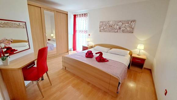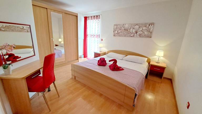 Die klimatisierte Wohnung im Apartman Scarlett bietet Platz für bis zu 4 Personen. Sie verfügt über 2 Schlafzimmer und eine voll ausgestattete Küche. Vom Balkon aus haben die Gäste direkten Zugang zu einer Terrasse. Zur weiteren Ausstattung gehört ein Flachbildfernseher. Kostenloses WLAN und kostenfreie Parkplätze stehen den Gästen zur Verfügung.