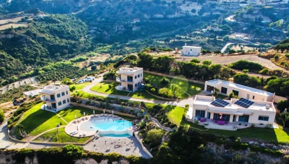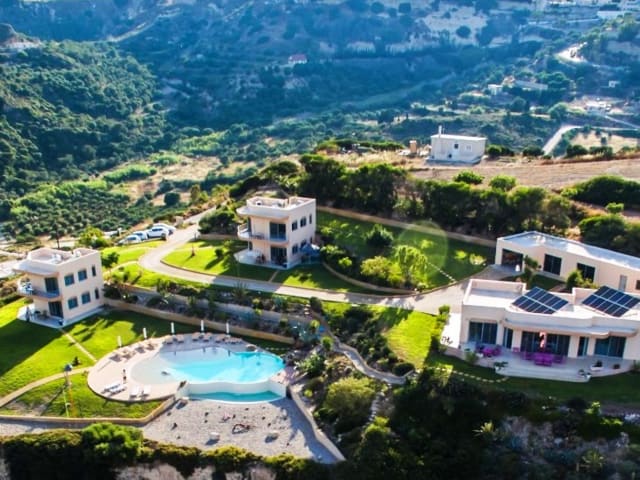 Die Wohnungen Jedes Gebäude besteht aus zwei Wohnungen, eine im ersten Stockwerk und eine im Erdgeschoss. Die Wohnungen sind nach Süden orientiert und für 2 bis 4 Personen komplett ausgestattet. Die Wohnung im ersten Stock verfügt über ein Innenbereich von 46m2 und einen Balkon und eine Terrasse von 24m2 - insgesamt 70m2. Schlafmöglichkeiten für 2 bis 3 Personen: Schlafzimmer: 2 Einzelbetten. Wohnzimmer: Sofa / Ausziehbett. Die Erdgeschoss-Wohnung verfügt über ein Innenbereich von 56m2 und eine Terrasse von 22m2 - insgesamt 78m2. Schlafmöglichkeiten für 2 bis 4 Personen: 2 Erwachsene und 2 Kinder oder 3 Erwachsene und 1 Kind. Schlafzimmer: 2 Einzelbetten. Wohnzimmer: Sofa / Ausziehbett. Diele: Möglichkeit ein zusätzliches Bett aufzustellen. Beschreibung: Jeder Wohnung hat Flur, Küche, Wohnzimmer, Schlafzimmer, Badezimmer mit Badewanne. Jede Wohnung hat Isolierverglasung, die für eine ausgezeichnete thermische Dämmung sorgt und als UV-Schutz dient. Die Wohnungen wurden so entworfen dass sie sich in die Landschaft integrieren und bieten einen wunderschönen Panoramablick. Die großen Glasfenster geben den Bewohnern das Gefühl, dass die Aussicht ein Teil der Inneneinrichtung ist. In jeder Wohnung befindet sich: Klimaanlage (warm und kalt) Warmes Wasser Sonnenenergie und Elektroboiler 160Liter und Wasserenthärter. Designer-Möbel. Modern ausgestattete Küche. Telefon, Satellitenfernsehen, Radio und Internetanschluss.