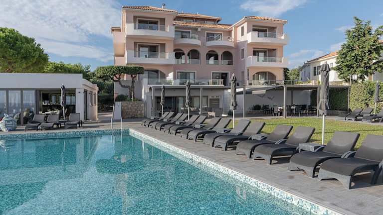 Erleben Sie einen entspannten Urlaub im Kymothoe Elite auf Zakynthos. Das Hotel bietet moderne, gut ausgestattete Apartments mit herrlichem Meerblick und einem eigenen Balkon. Genießen Sie die Ruhe inmitten von Olivenhainen und entspannen Sie am privaten felsigen Strand. WLAN ist im gesamten Hotel verfügbar und kostenfreie Parkplätze stehen zur Verfügung.