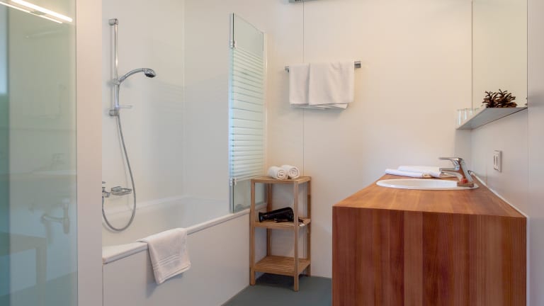 Die Zimmer sind mit einem Balkon ausgestattet und bieten eine komplette Kücheneinrichtung mit Kühlschrank, Geschirrspüler, Mikrowelle und einer Kaffee-/Teemaschine. Die Unterkünfte verfügen über ein Badezimmer mit Dusche und sind mit Heizung, TV-Gerät, Telefon und kostenlosem WLAN ausgestattet. Ein Doppelbett und ein Sofabett stehen zur Verfügung.