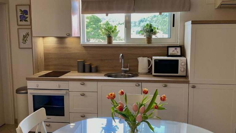 Alle Wohneinheiten in den Apartments Maria Kukljica sind mit einem Balkon ausgestattet, der einen Blick auf die Berge freigibt. Die Apartments verfügen über einen Sitzbereich, einen Satelliten-Flachbild-TV und eine voll ausgestattete Küche mit Kühlschrank und Ofen. Zudem gibt es ein eigenes Badezimmer mit Dusche und kostenlosen Pflegeprodukten.