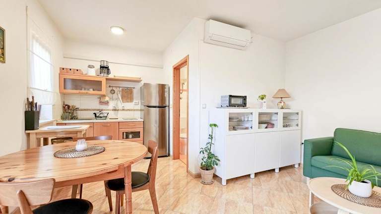 Die Ferienwohnung umfasst ein Schlafzimmer, ein Wohnzimmer sowie eine voll ausgestattete Küche mit Kühlschrank und Kaffeemaschine. Des Weiteren verfügt sie über ein Badezimmer mit Dusche. Alle Gästezimmer sind klimatisiert und bieten Gartenblick.