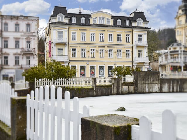 Die Apartments Marienbad befindet sich im Zentrum von Marianske Lazne mit Blick auf den Park und nahe der berühmten Kolonnade. Die Lage der Apartments Marienbad macht sie zur perfekten Wahl für einen Besuch der Stadt und mit einem herrlichen Blick auf die umliegende Natur. Die Suiten sind ideal für lange Aufenthalte im schönen Marienbad, in einem ruhigen Gebäude mit Blick auf die Stadt.