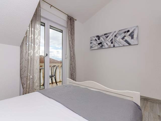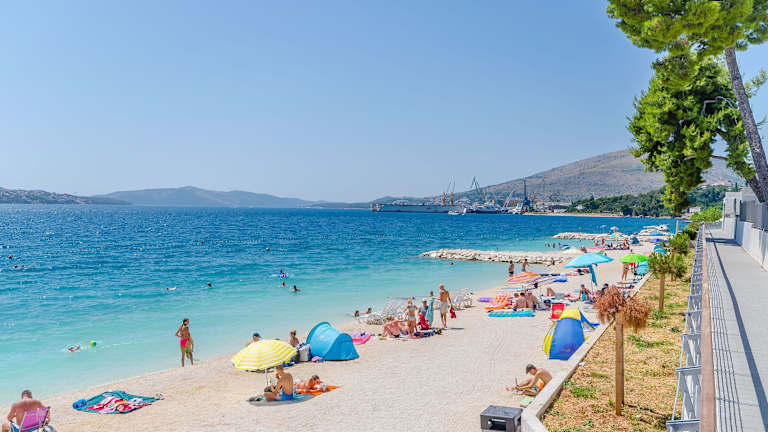 Die Apartments Marina befinden sich in Trogir auf der Insel Ciovo. Die Strände Copacabana und Rozac sind nur einen kurzen Spaziergang entfernt und bieten Ihnen die Möglichkeit, Sonne und Meer zu genießen. Der Strand Marinova Draga liegt ebenfalls in der Nähe und ist ideal für einen entspannten Tag am Wasser. Der Archäologische Park Salona ist nur 25 km entfernt und bietet Ihnen die Möglichkeit, in die antike Geschichte der Region einzutauchen. Der Flughafen Split ist nur 5 km von den Apartments entfernt und sorgt für eine bequeme Anreise.