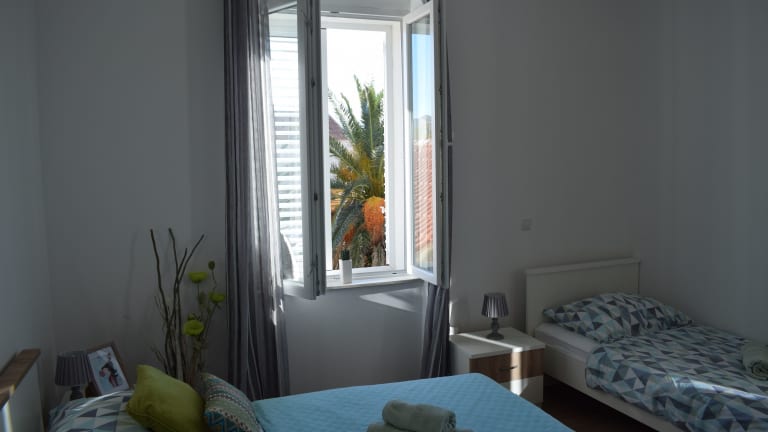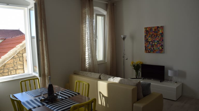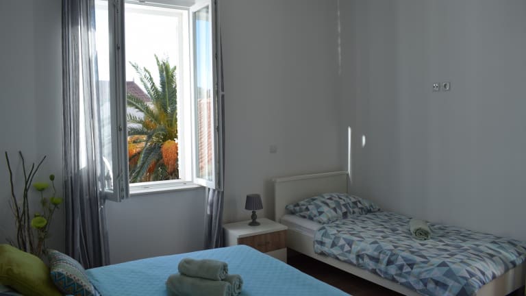 Die Apartments Mate befinden sich in einer erstklassigen Lage, nur 200 m vom Kieselstrand und 300 m vom Stadtzentrum von Makarska entfernt. In unmittelbarer Nähe finden Sie ein Restaurant, eine Pizzeria und ein Lebensmittelgeschäft, so dass Sie bequem alle Annehmlichkeiten in Ihrer Nähe haben. Machen Sie einen Spaziergang entlang der Strandpromenade, besichtigen Sie die St.-Markus-Kathedrale und das Franziskanerkloster oder erkunden Sie die umliegenden Geschäfte und Restaurants. Der Hauptbusbahnhof ist nur 100 m entfernt und der Fährhafen erreicht man nach 700 m. Für einen Tagesausflug empfiehlt sich ein Besuch der Stadt Split mit ihrem berühmten Diokletianpalast, der zum UNESCO-Weltkulturerbe gehört und nur 59 km von den Apartments Mate entfernt liegt.