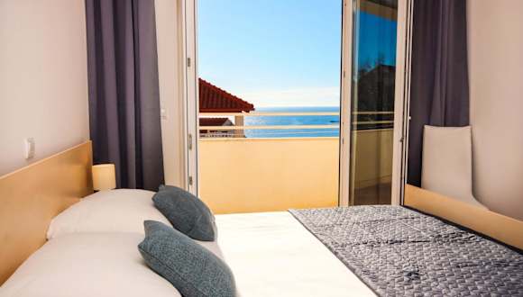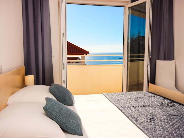 Die klimatisierten Zimmer sind mit Parkettböden, einem Flachbild-TV, einem Kleiderschrank und einem eigenen Badezimmer ausgestattet. Jedes Zimmer verfügt zudem über einen Balkon mit Meerblick.
