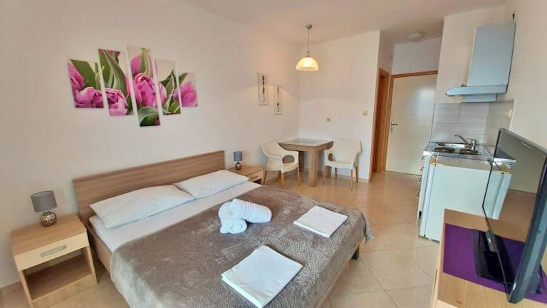 Die Zimmer in der Unterkunft Apartments Nemira sind klimatisiert und verfügen über einen Kleiderschrank sowie einen Flachbild-TV. Jedes Zimmer ist mit einem eigenen Badezimmer, Bettwäsche, Handtüchern und einem Balkon mit Meerblick ausgestattet. Zudem steht den Gästen ein Kühlschrank zur Verfügung.