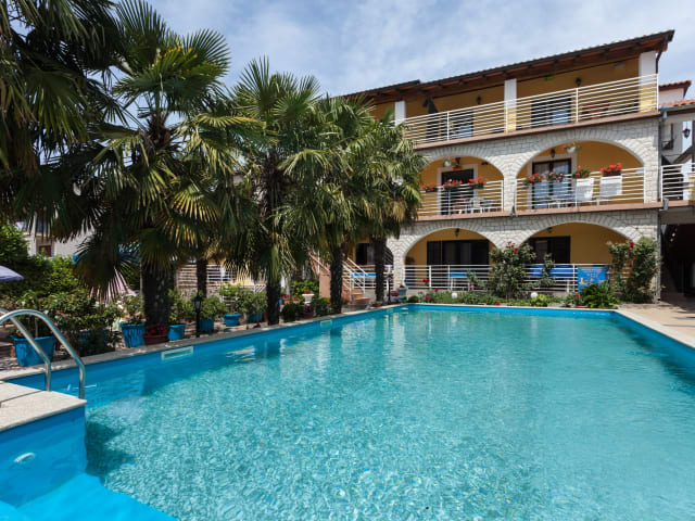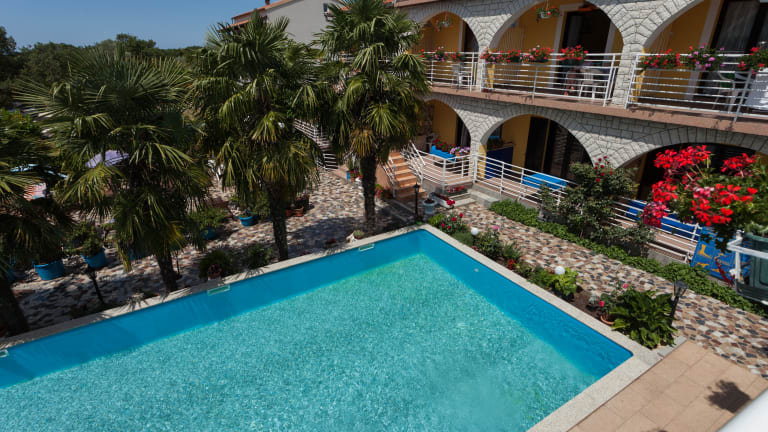 Das Hotel Apartments Paradis in Rovinj bietet eine komfortable Unterkunft mit einem Außenpool, einem Garten mit Grillmöglichkeiten und kostenfreiem WLAN. Die Apartments verfügen über einen Balkon und kostenfreie Parkplätze. Die Lage ist ideal, nur wenige Minuten von der Autobahn und dem Zentrum von Rovinjsko Selo entfernt. Die Unterkunft bietet auch eine gute Anbindung an den öffentlichen Nahverkehr und liegt in der Nähe eines Lebensmittelgeschäfts und einer traditionellen istrischen Taverne. Die historische Stadt Rovinj und der Sandstrand von Vestar Camp sind ebenfalls leicht zu erreichen.