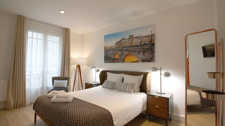 Das Apartments Paris Centre - At Home Hotel befindet sich in verschiedenen Standorten im 1., 2., 3., 4. und 8. Arrondissement von Paris. In unmittelbarer Nähe befinden sich verschiedene touristische Attraktionen, darunter die Kathedrale Notre-Dame de Paris, der Louvre und das Centre Georges-Pompidou. Zudem sind die U-Bahn-Stationen leicht zu Fuß erreichbar, was eine direkte Anbindung an die Bahnhöfe Montparnasse, Paris-Est und Paris-Nord ermöglicht.