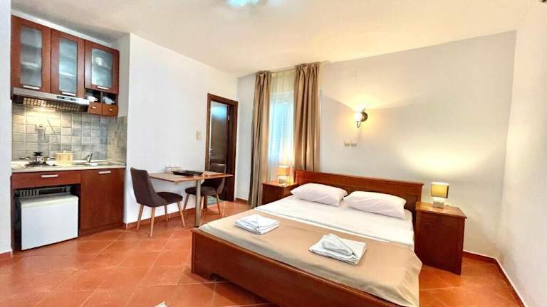 Die Apartments sind mit einem Sitzbereich, einem Satelliten Flachbild-TV und einer voll ausgestatteten Küche mit Kühlschrank und Herd ausgestattet. Jedes Apartment verfügt über ein eigenes Badezimmer mit Dusche und kostenlosen Pflegeprodukten. Zudem bieten alle Wohneinheiten einen Balkon mit Gartenblick.