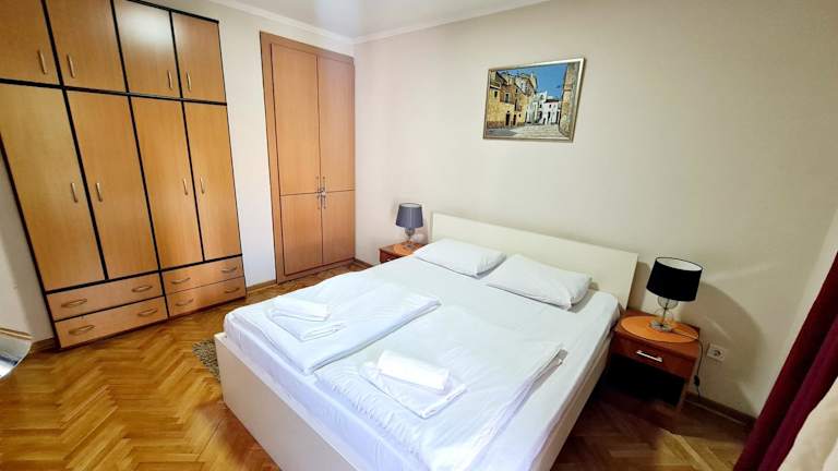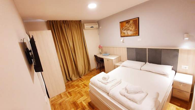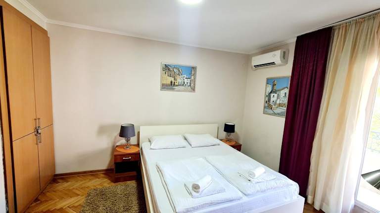 Verbringen Sie einen erholsamen Aufenthalt im Pier Apartment in Budva. Das Apartment bietet eine Terrasse und liegt nur 300 m vom nächsten Strand entfernt. WLAN nutzen Sie kostenfrei und die Unterkunft ist klimatisiert. Die Zimmer sind mit einem Flachbild-TV, einem Kühlschrank und einem Wasserkocher ausgestattet. Privatparkplätze stehen Ihnen ebenfalls zur Verfügung. Handtücher und Bettwäsche werden gestellt. Entdecken Sie die schönen Strände von Budva, darunter auch der Strand Mogren und der Strand Jaz. Der Flughafen Tivat ist nur 16 km entfernt.